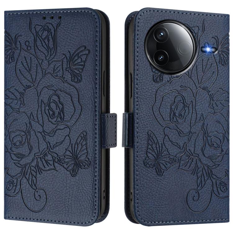Funda de Cuero Antirrobo con Rfid para Redmi K80 5G/K80 Pro 5G con Relieve En Rosa (Azul Oscuro)