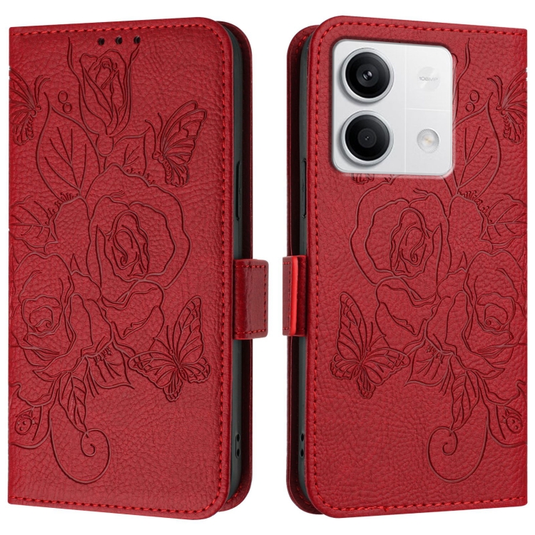 Funda de Cuero Antirrobo con Rfid y Diseño de Rosas En Relieve para Redmi Note 13 5G (Rojo)