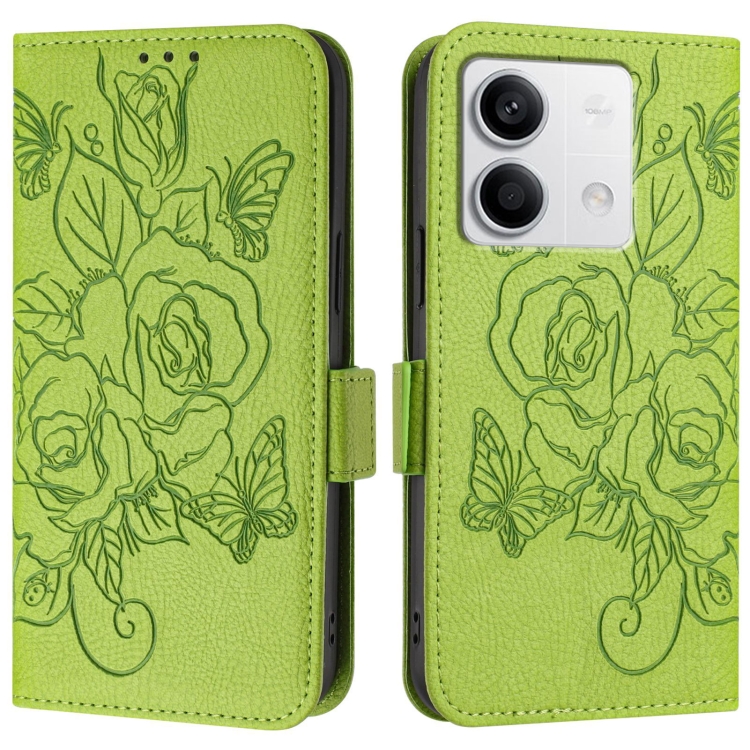 Funda de Cuero Antirrobo con Rfid y Diseño de Rosas En Relieve para Redmi Note 13 5G (Verde)