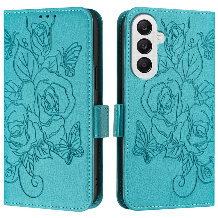 Funda de Cuero Antirrobo con Rfid y Diseño En Relieve Global para Samsung Galaxy A25 5G (Azul Claro)