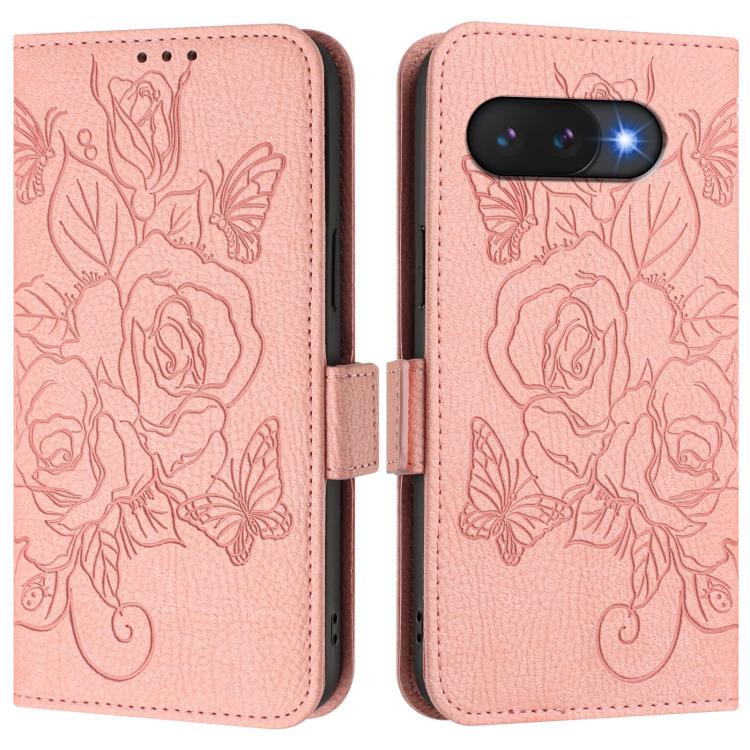 Funda de Cuero Antirrobo con RFID y Diseño en Relieve para Google Pixel 9A (Rosa)