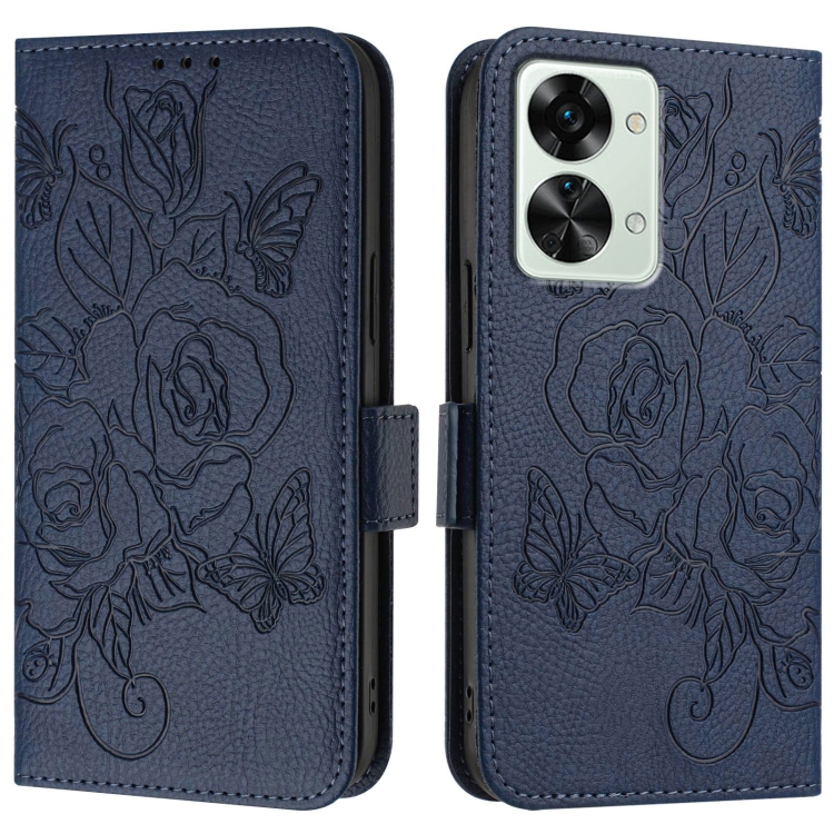 Funda de Cuero Antirrobo con RFID y Diseño en Relieve para OnePlus Nord 2T (Azul Oscuro)