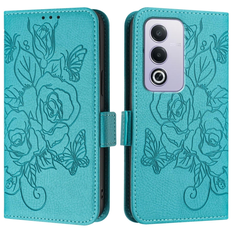 Funda de Cuero Antirrobo con Rfid y Diseño En Relieve para Oppo A3 Pro 5G (Azul Claro)