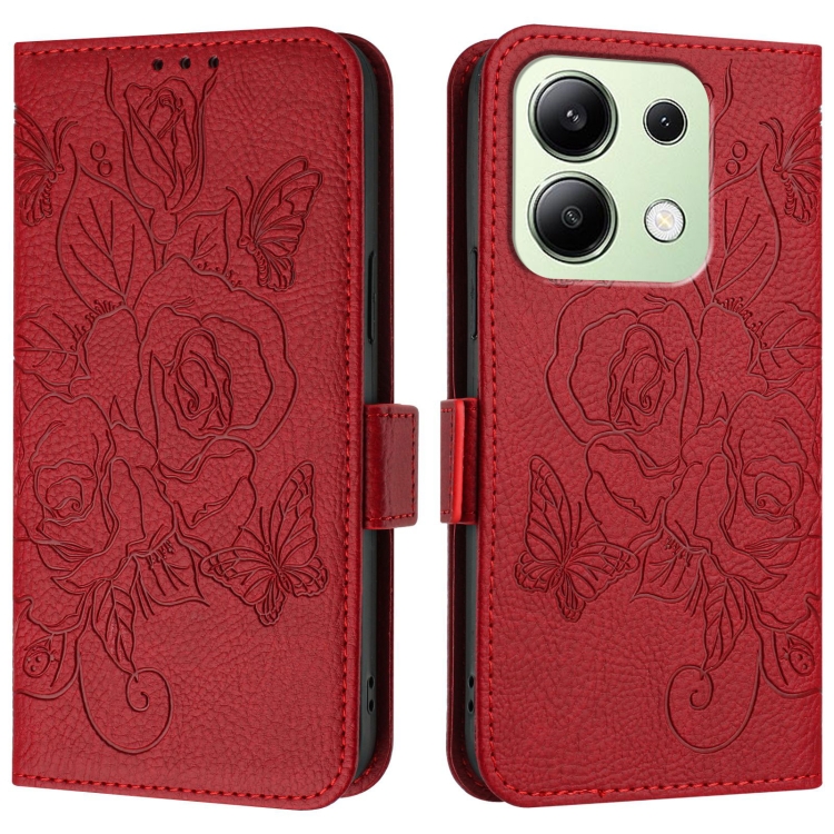 Funda de Cuero Antirrobo con Rfid y Diseño En Relieve para Redmi Note 13 4G (Rojo)