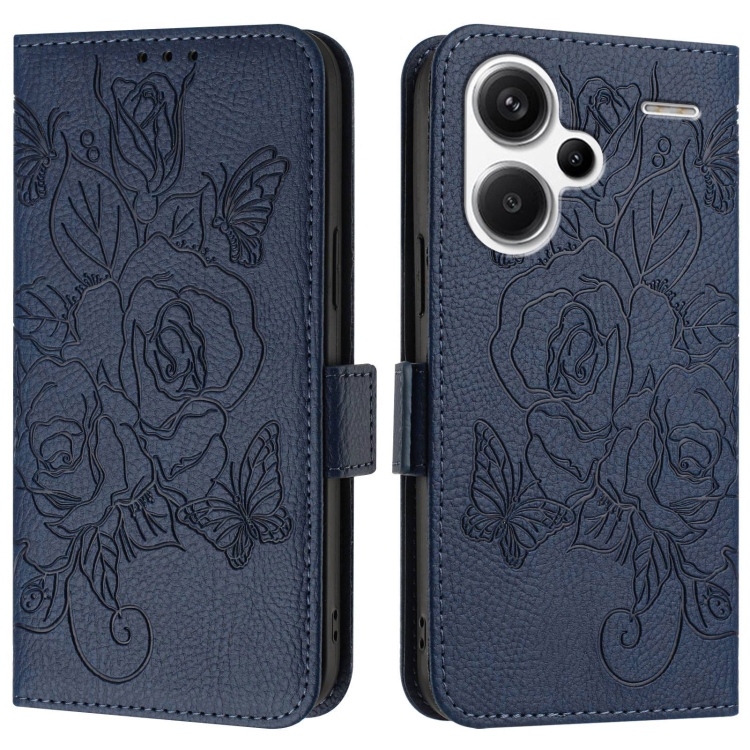 Funda de Cuero Antirrobo con Rfid y Relieve Global para Redmi Note 13 Pro+ 5G (Azul Oscuro)