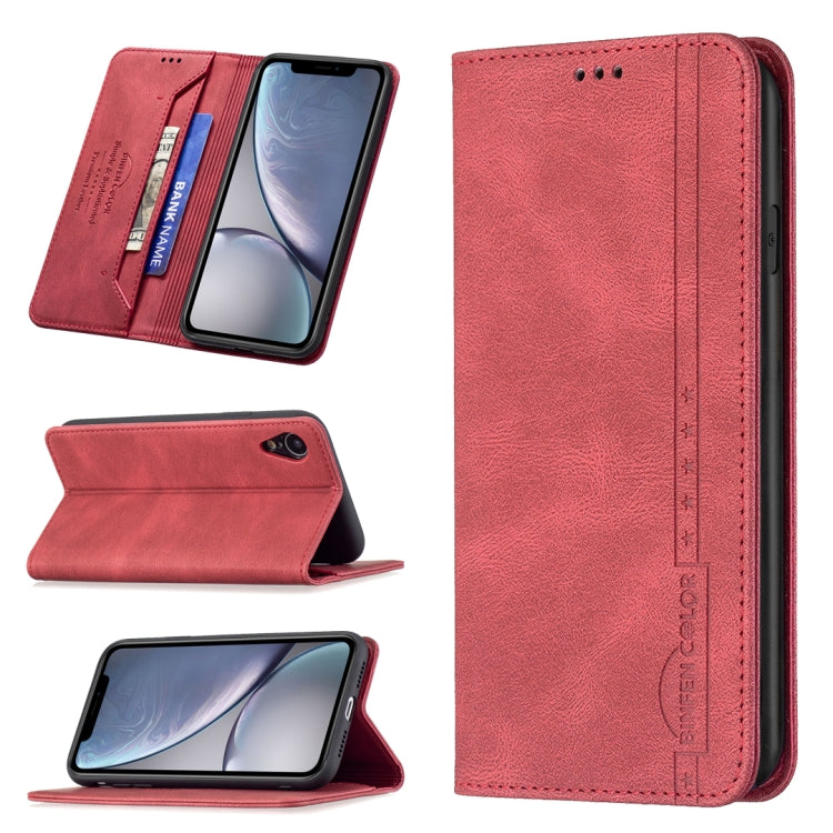 Funda Cuero Antirrobo Bloqueo RFID Magnético Soporte Tragamonedas Billetera iPhone Xr (Rojo)