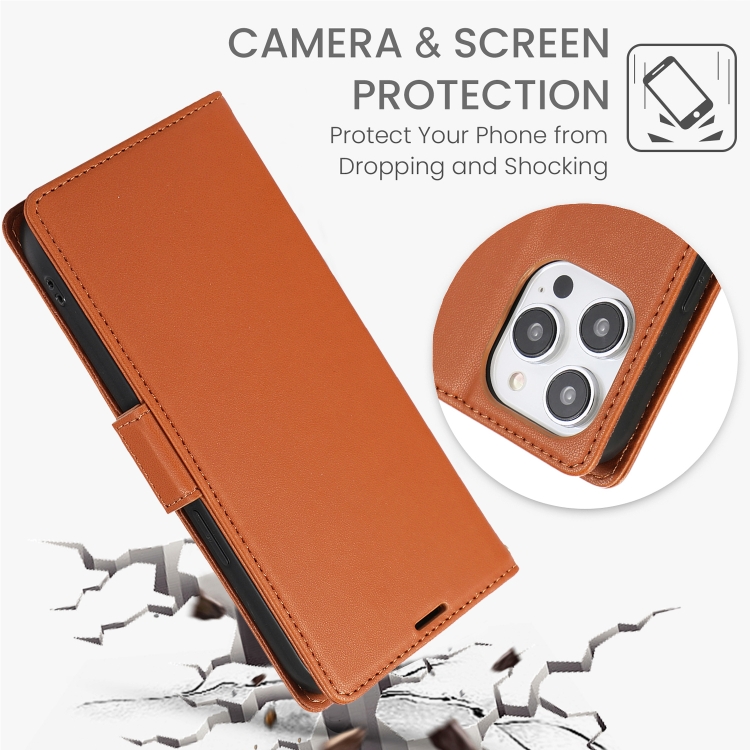 Funda de Cuero Antirrobo Rfid con Hebilla Lateral para iPhone 16 Pro Max (Marrón)