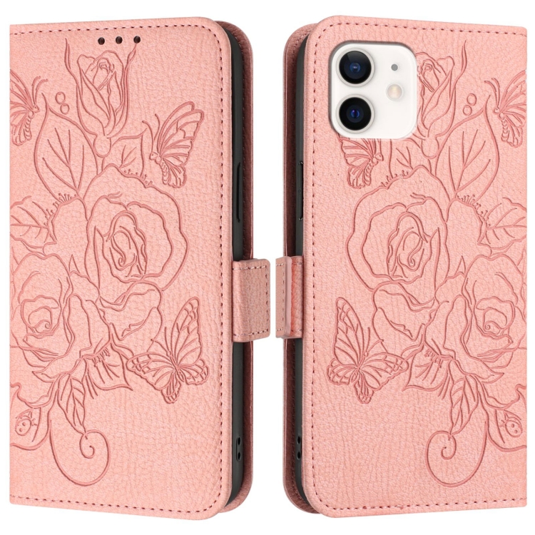 Funda de Cuero Antirrobo RFID para iPhone 12 Mini con Relieve (Rosa)