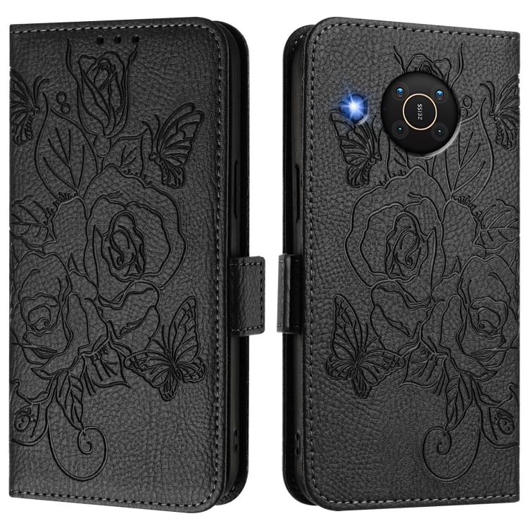 Funda de Cuero Antirrobo RFID con Relieve en Rosa para Nokia X20/X10 (Negra)
