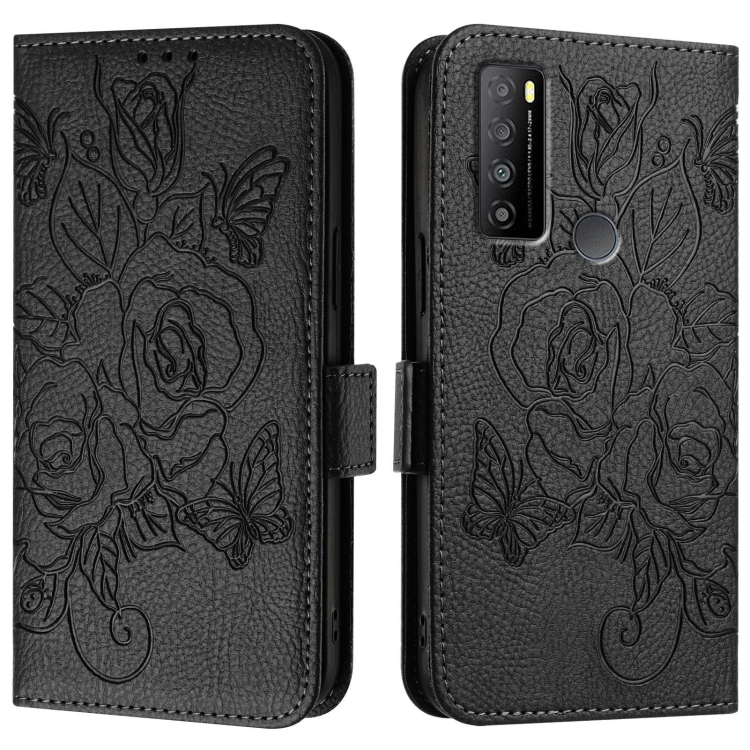 Funda de Cuero Antirrobo RFID con Relieve para TCL 30 XL T701Dl (Negra)