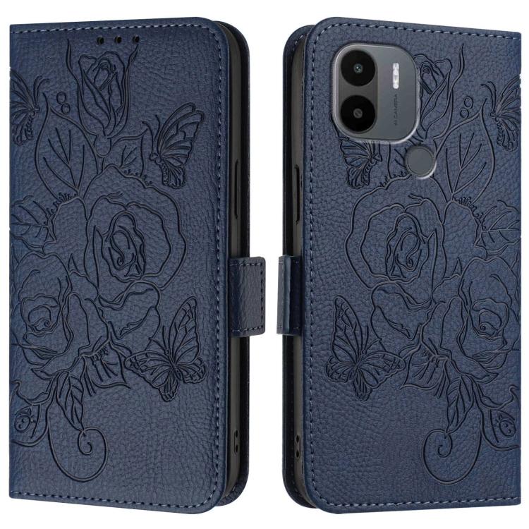 Funda de Cuero Antirrobo Rfid con Relieve Rosa para Redmi A2+ / Xiaomi Poco C51 (Azul Oscuro)