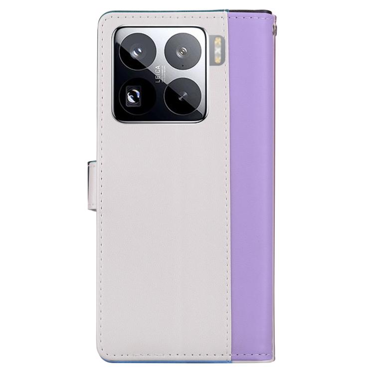 Funda de cuero bicolor con relieve para Xiaomi 15 Pro (morado y blanco)