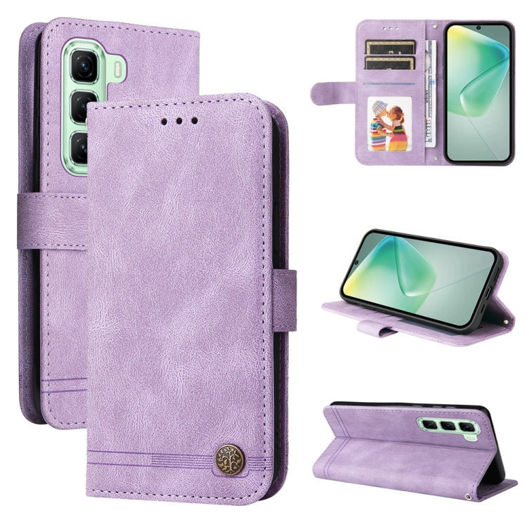 Funda de Cuero con Botones de Metal y Diseño Árbol de la Vida para Infinix Hot 50 5G (Morado)