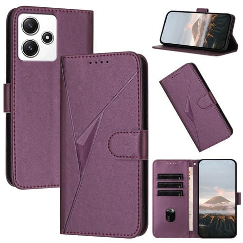 Funda de Cuero con Hebilla Triangular para Redmi 12 5G (Morado Oscuro)