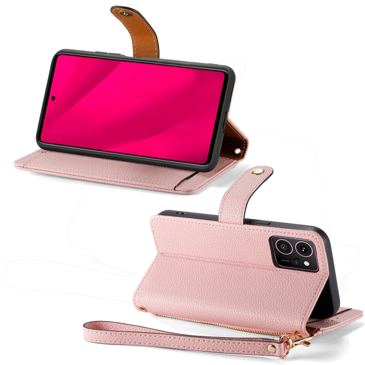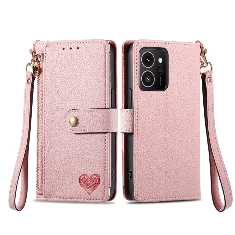 Funda de Cuero para Teléfono HMD Skyline Love con Cordón y Cremallera (Rosa)