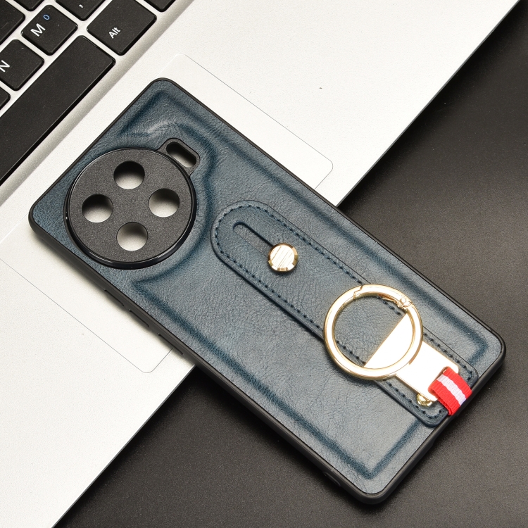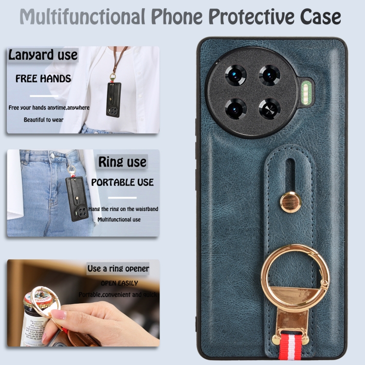 Funda de Cuero con Correa para el Cuello para Tecno Spark 20 Pro+ 5G (Azul)
