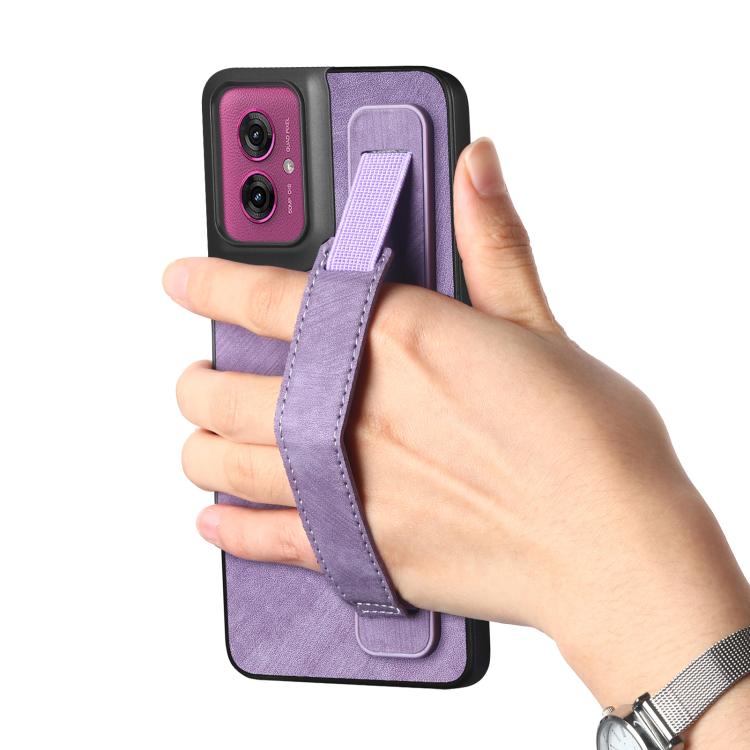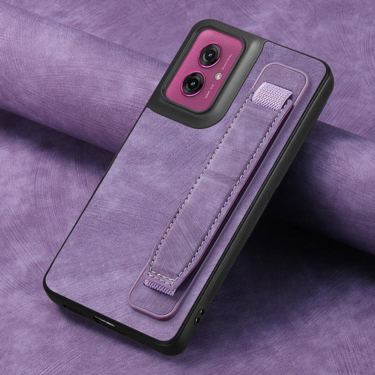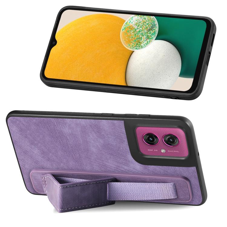 Funda de Cuero con Correa para la Muñeca Motorola Moto G55 Retro (Morado)