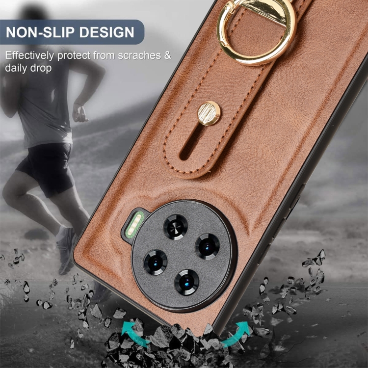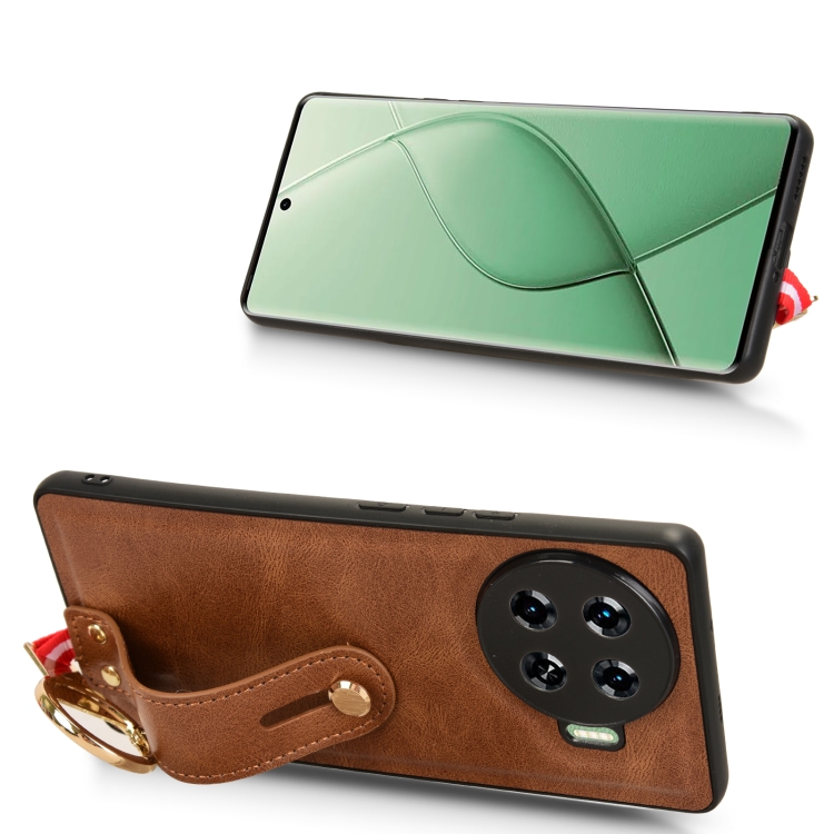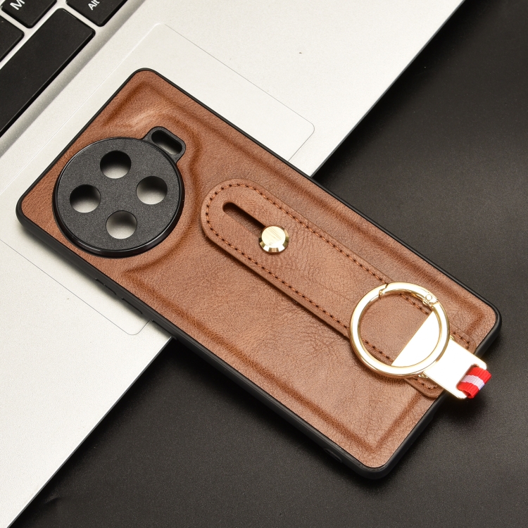 Funda de Cuero con Correa para la Muñeca Tecno Spark 20 Pro+ 5G (Marrón)