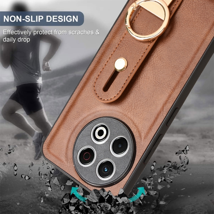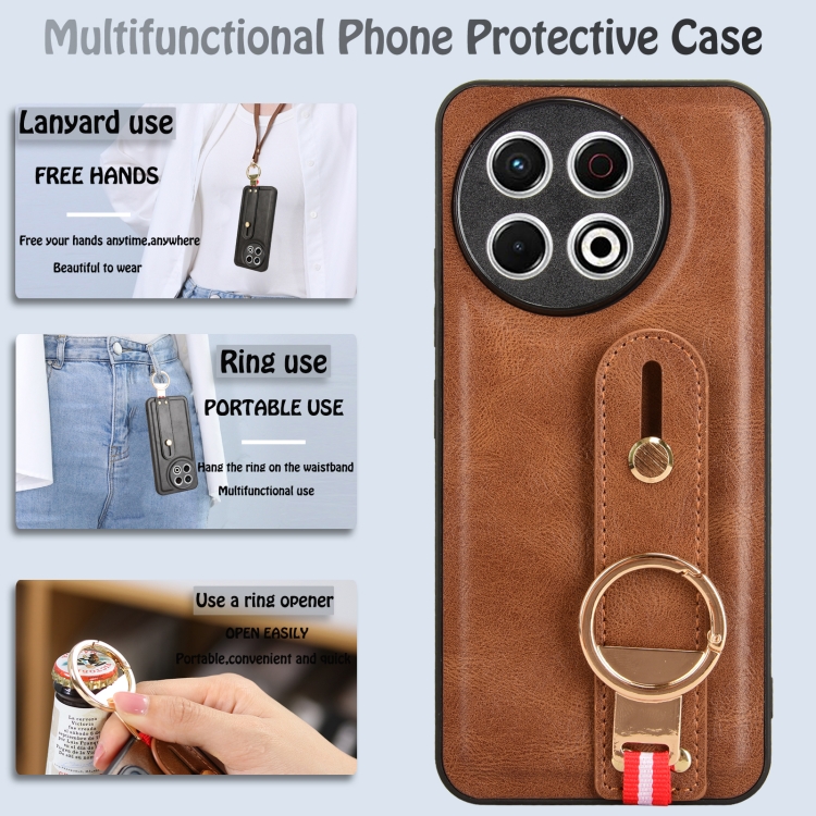 Funda de Cuero con Correa para Muñeca Tecno Spark 30 Pro 4G (Marrón)