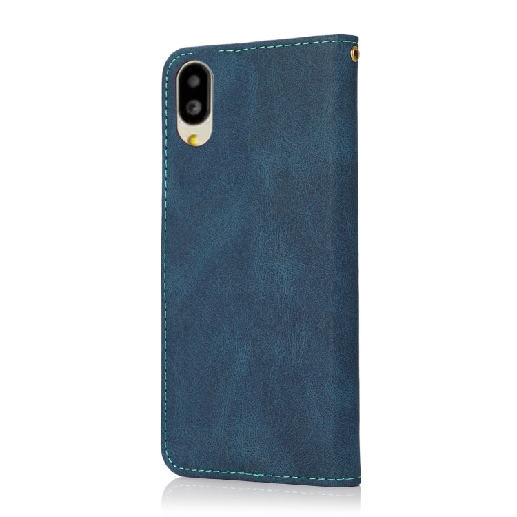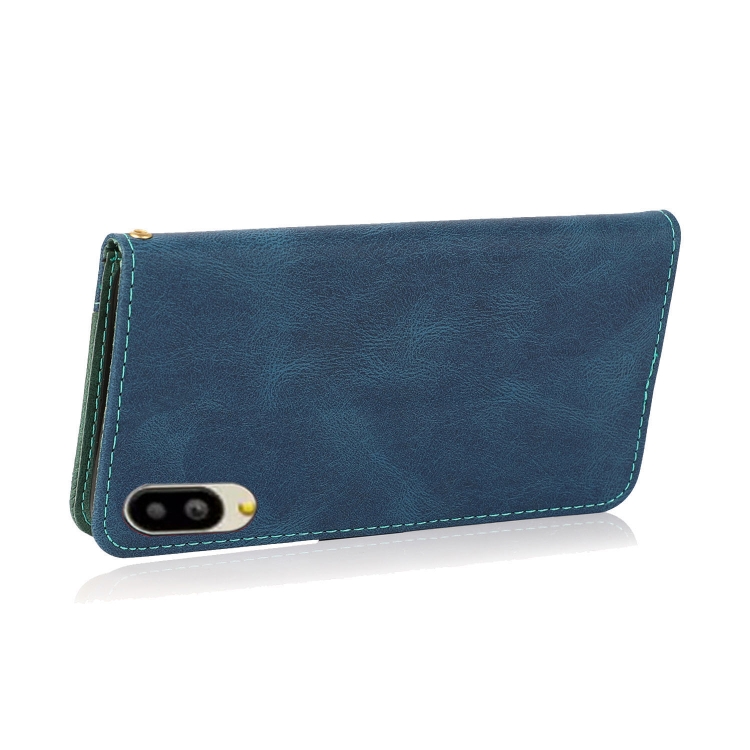 Funda de Cuero para Teléfono Sharp Basio Active Shg09 con Costuras Dos Colores (Azul y Verde)