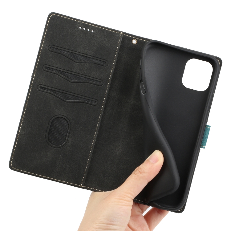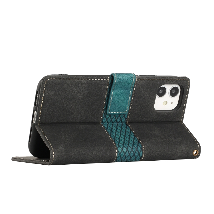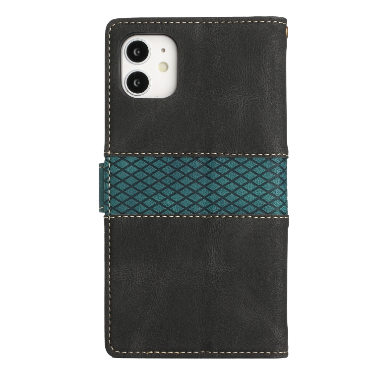 Funda de Cuero para iPhone 11 con Costuras en Cuadrícula y Cordón (Negro)