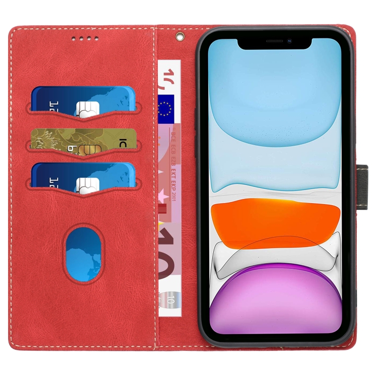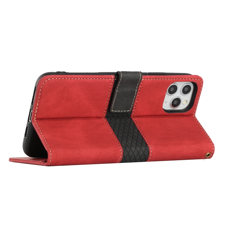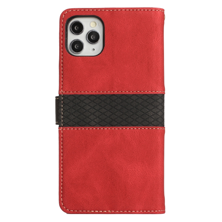 Funda de Cuero para iPhone 11 Pro con Costuras en Cuadrícula y Cordón (Rojo)