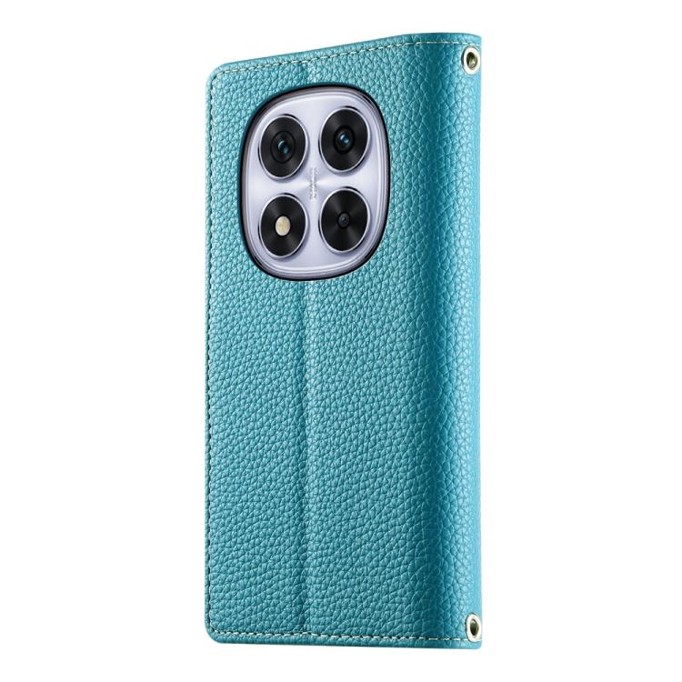 Funda de cuero con cremallera para Redmi Note 14 Pro 5G / Note 14 Pro+ 5G, con costuras, para múltiples tarjetas y correa corta (azul)