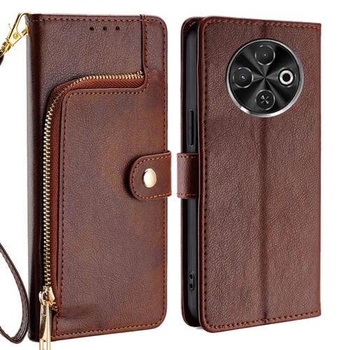 Funda de Cuero con Cremallera para Tecno Spark 30C 4G (Marrón)