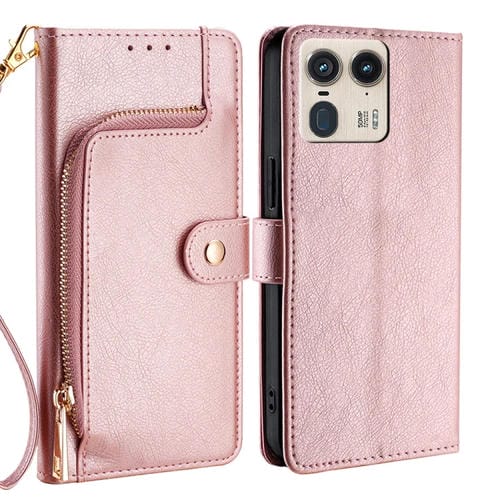 Funda de Cuero con Cremallera para Motorola Edge 50 Ultra (Oro Rosa)