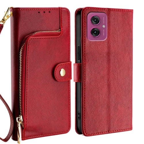 Funda de Cuero con Cremallera para Motorola Moto G55 5G (Rojo)