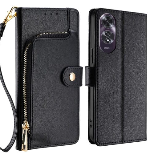 Funda de Cuero con Cremallera para Teléfono Oppo A60 4G Global (Negra)