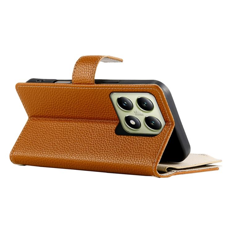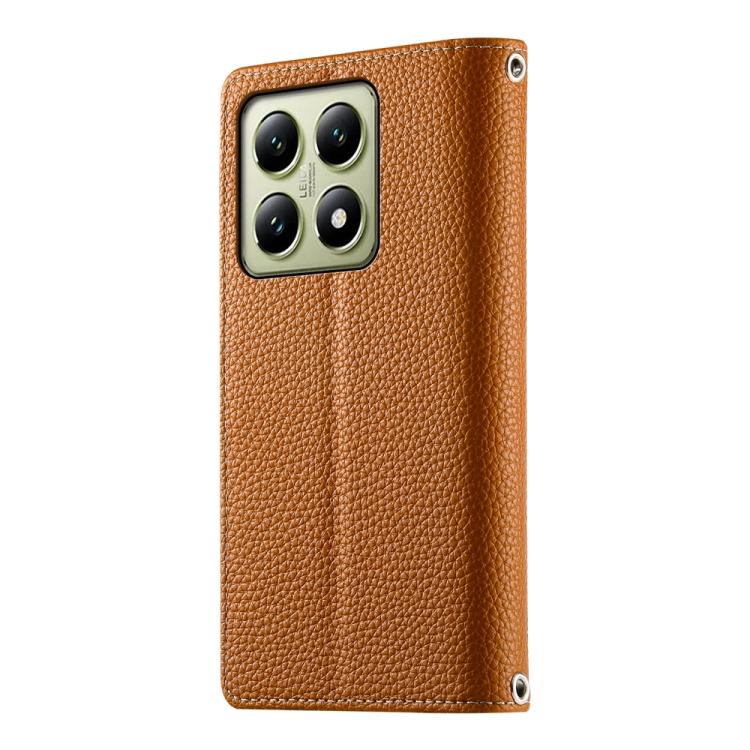 Funda de cuero con cremallera para Xiaomi 14T, con múltiples tarjetas y costuras, con correa corta (marrón)