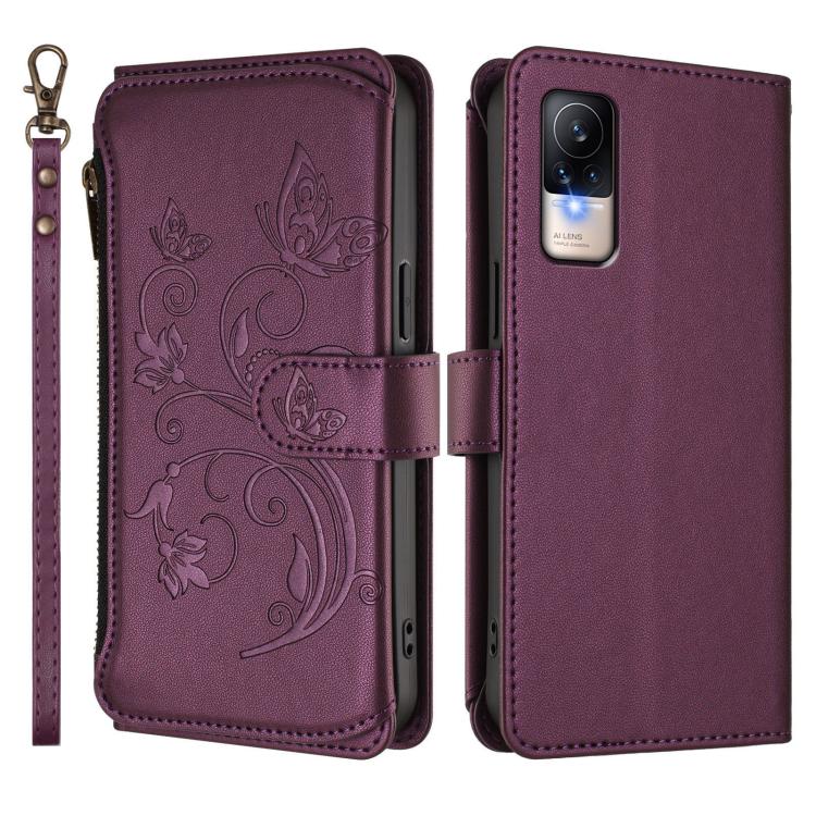 Funda de cuero con cremallera para Xiaomi Civi 1S, diseño de mariposas, flores y mariposas (morado oscuro)