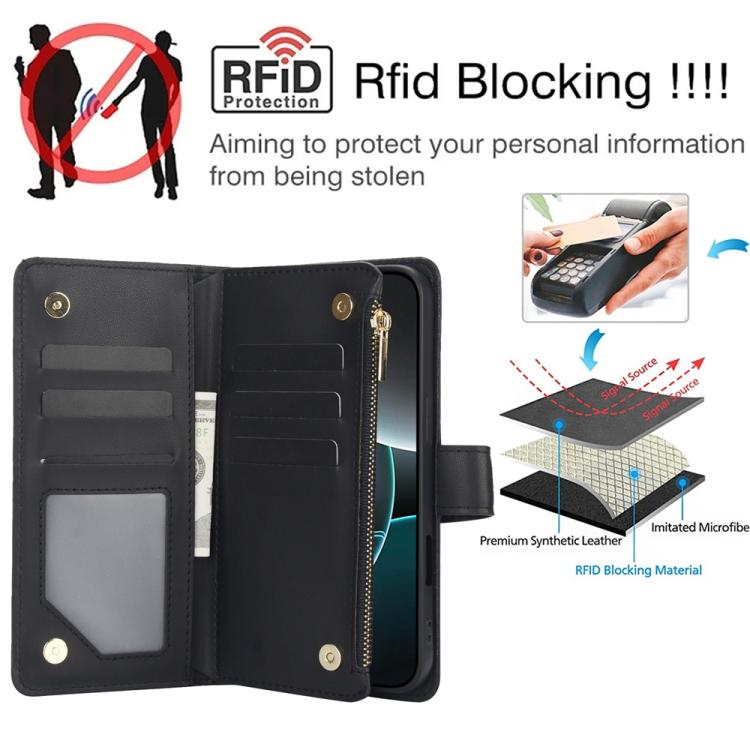 5. Función de cartera multitarjeta: Múltiples ranuras para tarjetas y bolsillos con cremallera, compartimentos para efectivo para guardar tarjetas de crédito y billetes pequeños.