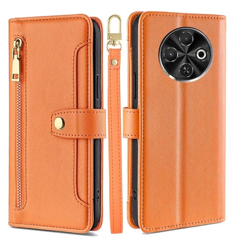 Funda de Cuero con Cremallera y Diseño Cruzado para Tecno Spark 30C 4G (Naranja)