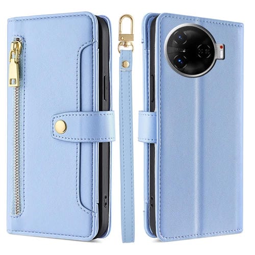 Funda de Cuero con Cremallera y Diseño de Oveja para Tecno Camon 30 Pro 5G (Azul)