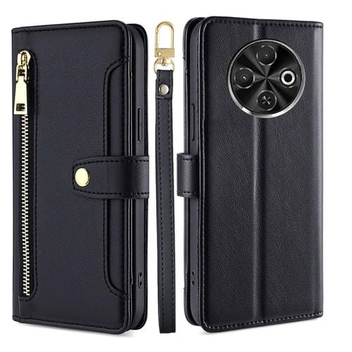 Funda de Cuero para Tecno Spark 30C 4G con Cremallera y Diseño de Oveja (Negra)