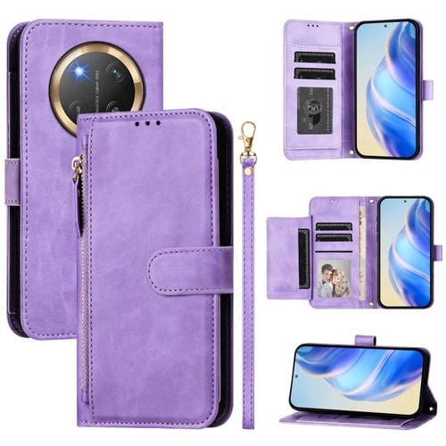 Funda de Cuero con Cremallera y Ranuras para Tarjetas para Honor X9C (Morado)