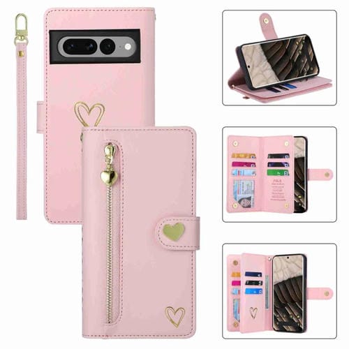 Funda de Cuero con Cremallera y Ranuras para Tarjetas para Google Pixel 7 Pro (Rosa)