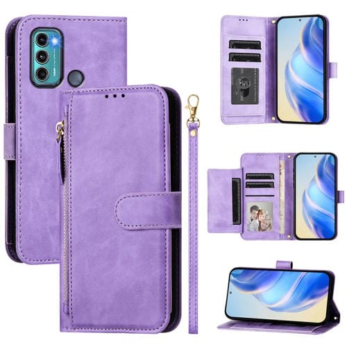 Funda de Cuero con Cremallera y Ranuras para Tarjetas para Motorola Moto G60 y Moto G40 Fusion (Morado)