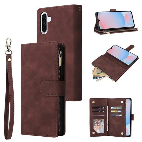 Funda de Cuero para Samsung Galaxy A56 5G con Cremallera y Tarjetero Multifuncional (Café)