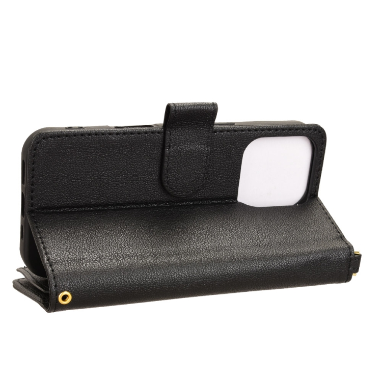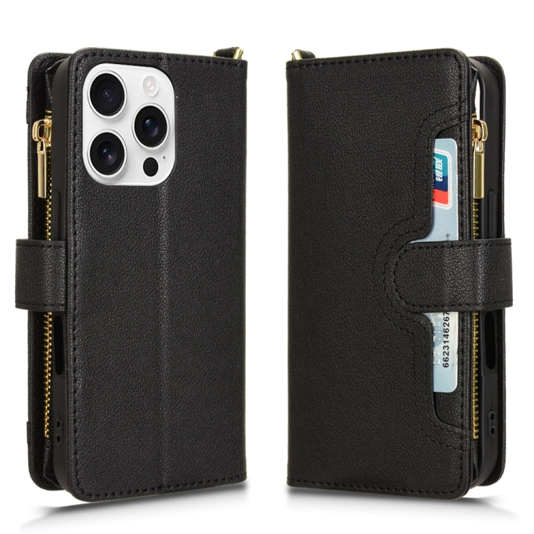 Funda de Cuero con Cremallera y Textura de Lichi para iPhone 16 Pro (Negra)