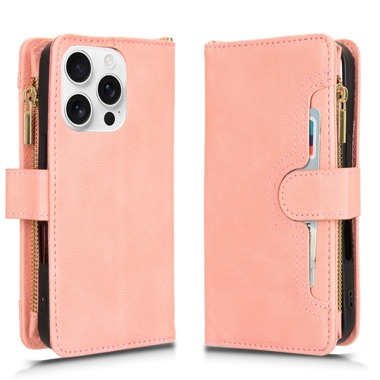 Funda de Cuero con Cremallera y Textura de Lichi para iPhone 16 Pro (Rosa)