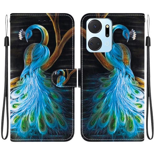 Funda de Cuero Honor X7A con Dibujo de Colores y Textura de Cristal (Pavo Real)