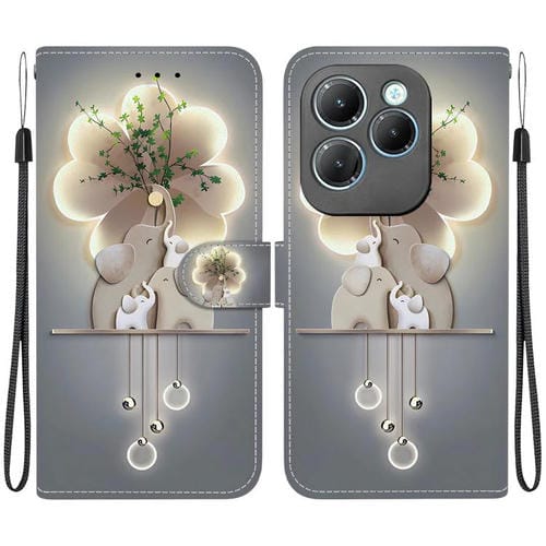 Funda de Cuero con Dibujo de Colores y Textura de Cristal para Infinix Hot 40/40 Pro (Elefantes)
