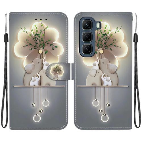 Funda de Cuero con Dibujo de Colores y Textura de Cristal para Infinix Hot 50 5G (Elefantes)
