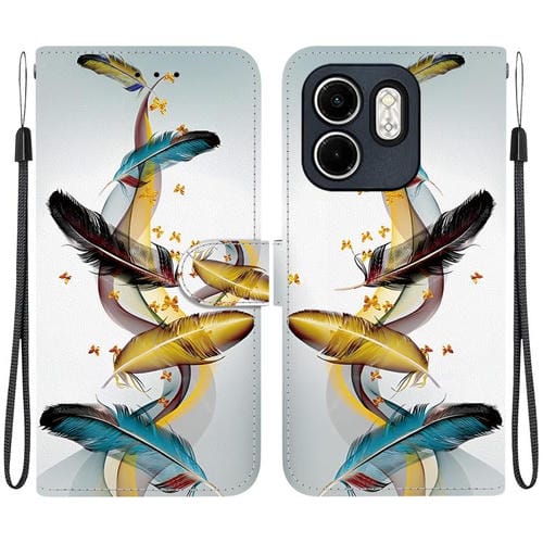 Funda de Cuero para Infinix Hot 50I Smart 9 con Dibujo y Textura Cristal (Plumas Doradas)