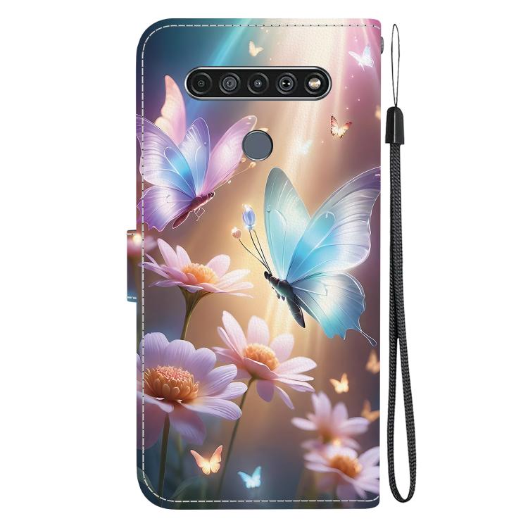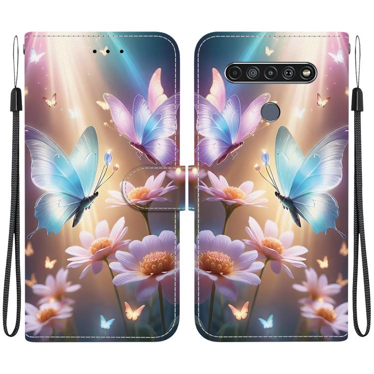 Funda de Cuero para LG K61 con Dibujo de Colores y Textura de Cristal (Mariposa, Amor y Flores)