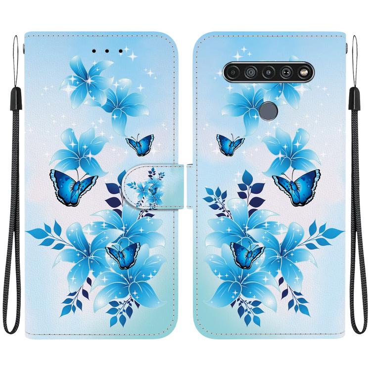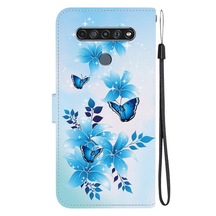 Funda de Cuero para LG K61 con Dibujo de Colores y Textura de Cristal (Mariposas Azules)