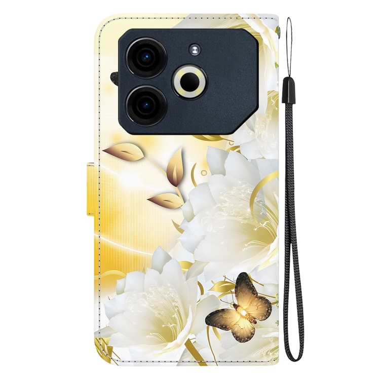 Funda de Cuero para Tecno Pova 6 Neo con Dibujo de Colores y Textura de Cristal (Mariposa Dorada Epiphyllum)